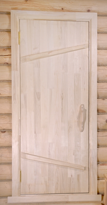 "Банная дверь на иглах, из массива липы категории А изготовлена из 3 слоев древесины с поперечно расположенными волокнами.