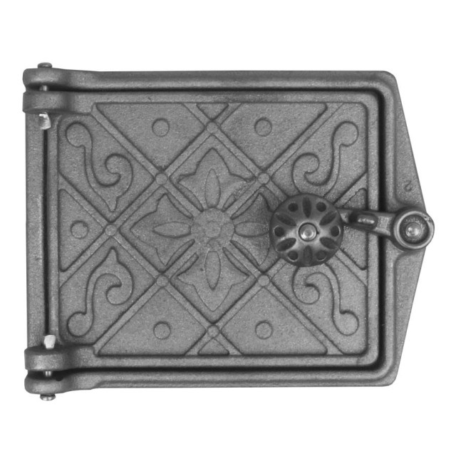 Прочистные дверки - это важный элемент конструкции печи, предназначенный, для обслуживания печных колодцев и дымоходов. Прочистные дверки перекрывают прочистные отверстия в кладке печи, ведущие к дымовым каналам. Без них чистка печей превращается в достаточно трудоемкий процесс. Дверка прочистная чугунная ДПр-2 Варвара изготовлена из экологически чистого и долговечного материала - чугуна. Дверка состоит из рамки и крышки с классическим заклёпочным соединением. Барельефный рисунок на дверке является не только элементом декора, но и выполняет функцию дополнительных рёбер жесткости. Благодаря конструктивным особенностям механизма запирания и симметричному рисунку, есть возможность установки дверки для открывания крышки в левую или в правую сторону.