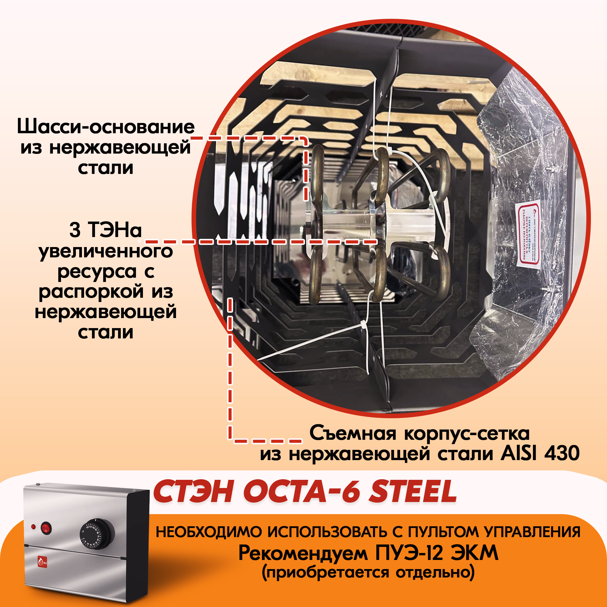 Электрическая каменка СТЭН ЭКМ 6 Octa steel в Набережных Челнах | Доставка по России