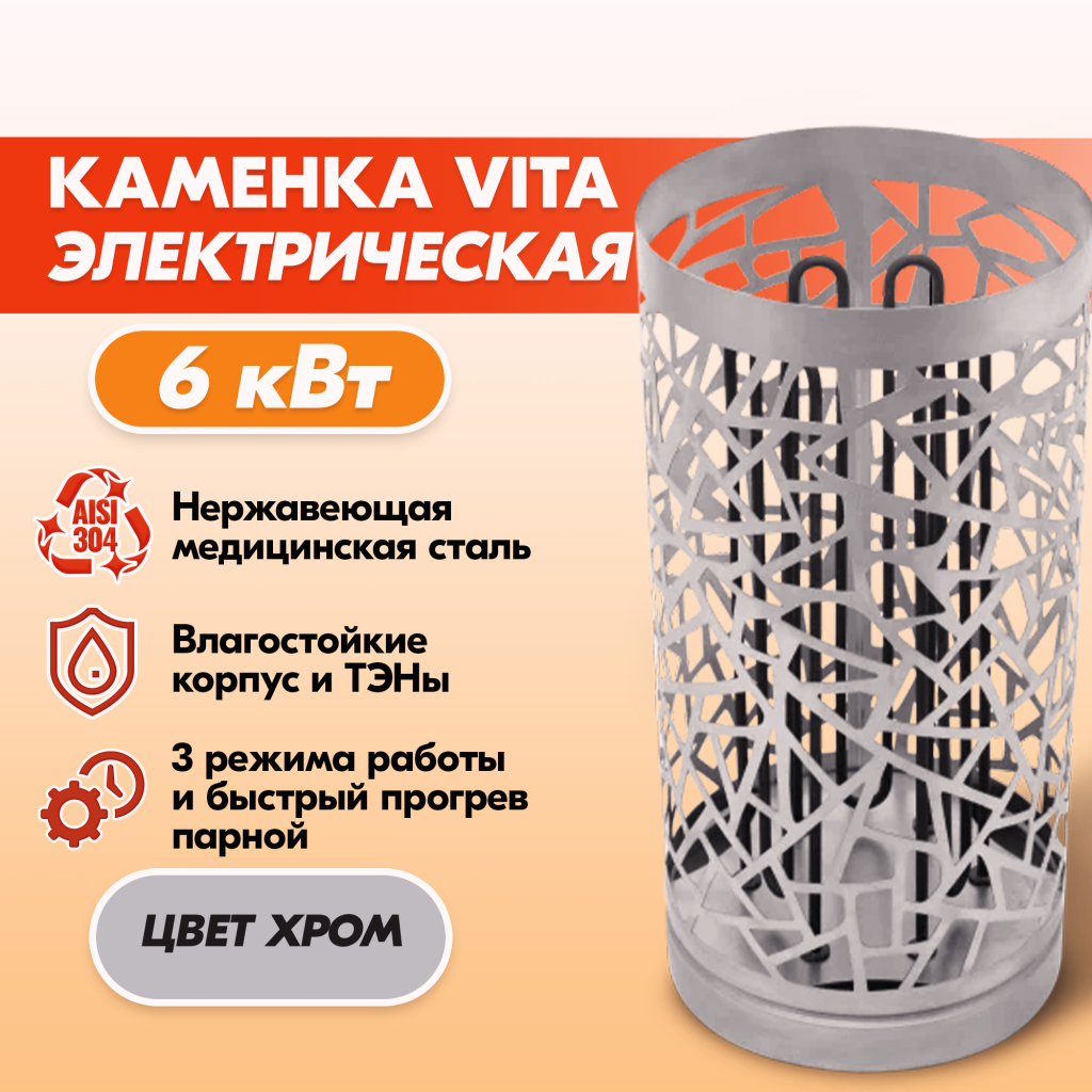 Электрокаменка VITA 6 кВт нерж. в Набережных Челнах | Доставка по России