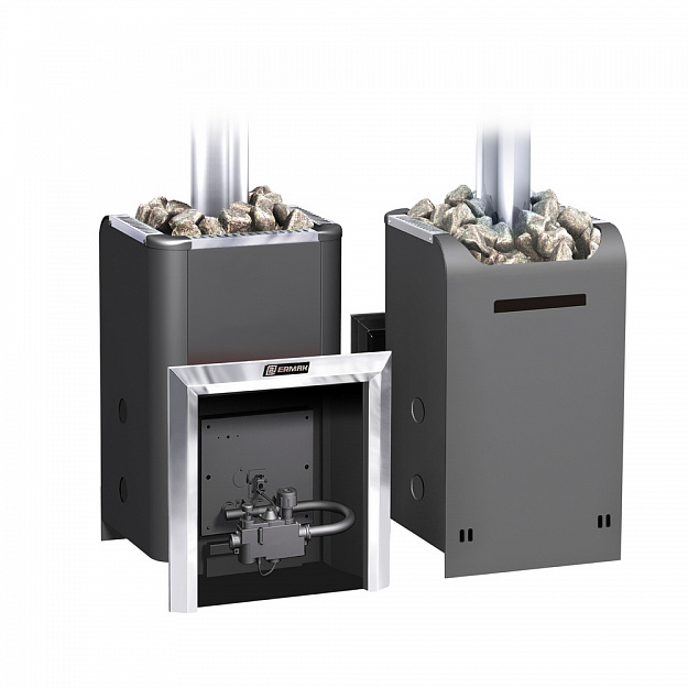 В комплекте печи идет газовая горелка с автоматикой УГ-САБК-АБ-12-1 (ПБ-12 кВт) с датчиком температуры, энергонезависимым пьезорозжигом и системой безопасности, которая отключит подачу газа при затухании огня или отсутствия тяги. Уралочку 12 можно топить и дровами, для этого в комплекте есть дверца, которая устанавливается вместо горелки.
