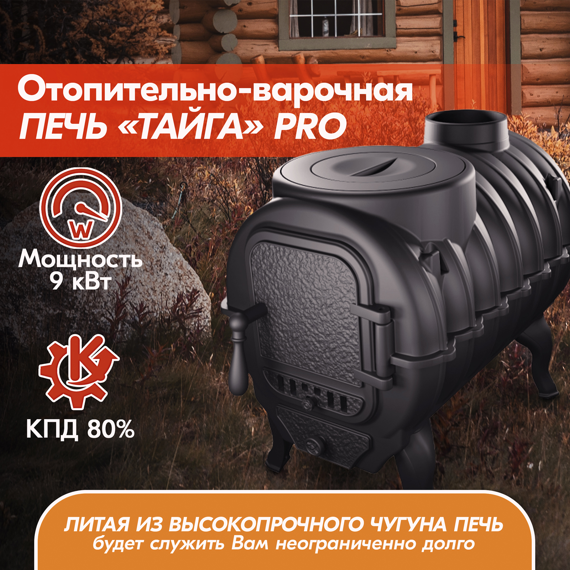 Печь отопительная Прометалл «Тайга» PRO - эффективная, функциональная, качественная и надежная чугунная печь с высоким КПД 80% по привлекательной цене.