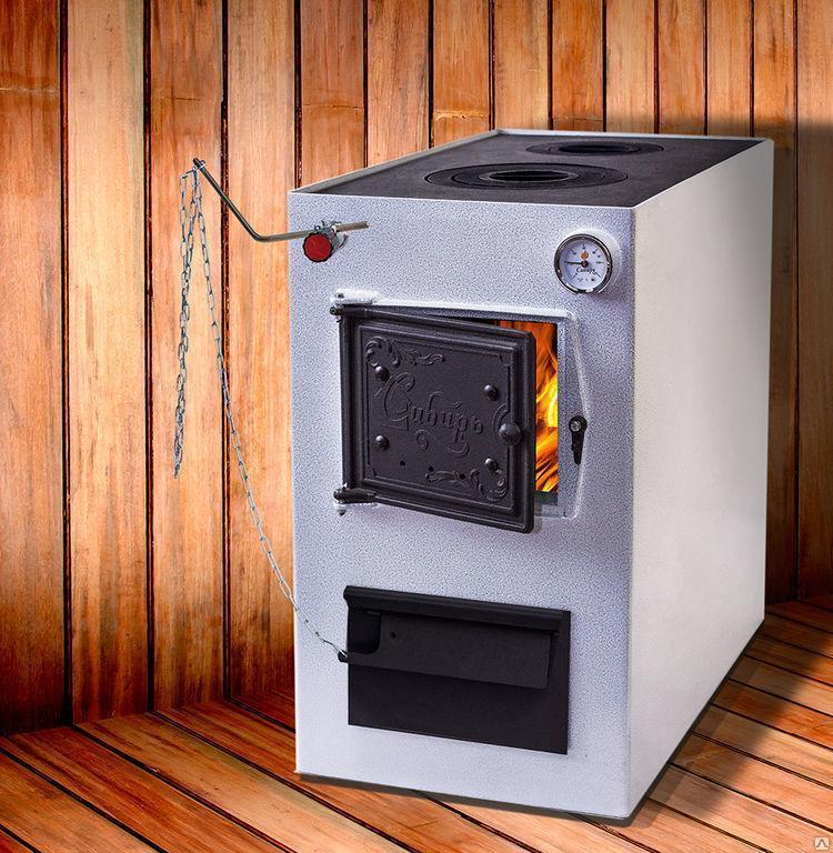 Твердотопливный котел "Сибирь КВО" 10 кВт - это пионер в линейке котлов с варочной поверхностью, в котором предусмотрена возможность установки автоматического регулятора тяги подачи воздуха.
