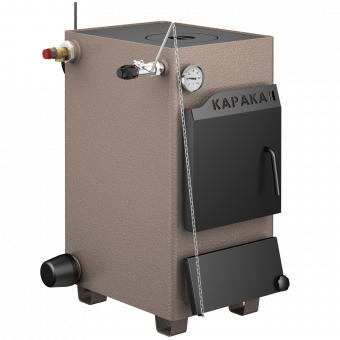 Достоинство этого котла - малые габариты в плане. По этой причине котел КАРАКАН-10 активно используют для отопления вахтовых домиков - на площади в треть квадратного метра получаем и отопительную установку, и варочную печь. Зачастую потребители предпочитают пользоваться для отопления блоком ТЭНов, а возможности твердотопливного котла приберечь для аварийного отключения электроэнергии.