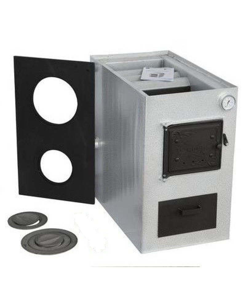 Котел водяного отопления "Сибирь КВО" 20 кВт - это самый мощный котел в отопительной линейке КВО.  Данный котел имеет компактные габариты, универсальное расположение элементов подключения, глубокую и емкую топочную камеру, позволяющую использовать длинные дрова при розжиге. Котел "Сибирь КВО" 20 кВт также как и другие котлы серии КВО оснащен варочной плитой, изготовленной из стали, толщиной 12 мм (запатентованной технологией завода "НМК"). На данный котел существует возможность установки автоматического регулятора тяги подачи воздуха. Отличительной особенностью данного котла является топочная дверца, изготовленная из чугуна с фирменным брендированным рисунком "Сибирь". С внутренней стороны дверцы установлен отбойник пламени из стали, защищающий основную дверцу от избыточной термической нагрузки и деформации. В процессе эксплуатации дверца плотно закрывается и открывается, не провисает и не ржавеет. Это дает дополнительную эстетику, необходимую в современном загородном доме.  Котел водяного отопления "Сибирь КВО" 20 функционирует на твердом топливе: дрова, прессованные брикеты, уголь и способен справиться с отоплением дома площадью до 200 м2, оборудованного системой водяного отопления с естественной или принудительной циркуляцией. Рабочее давление, предусмотренное для оптимального функционирования котла "Сибирь КВО" 20 кВт составляет не более 1 Бар.