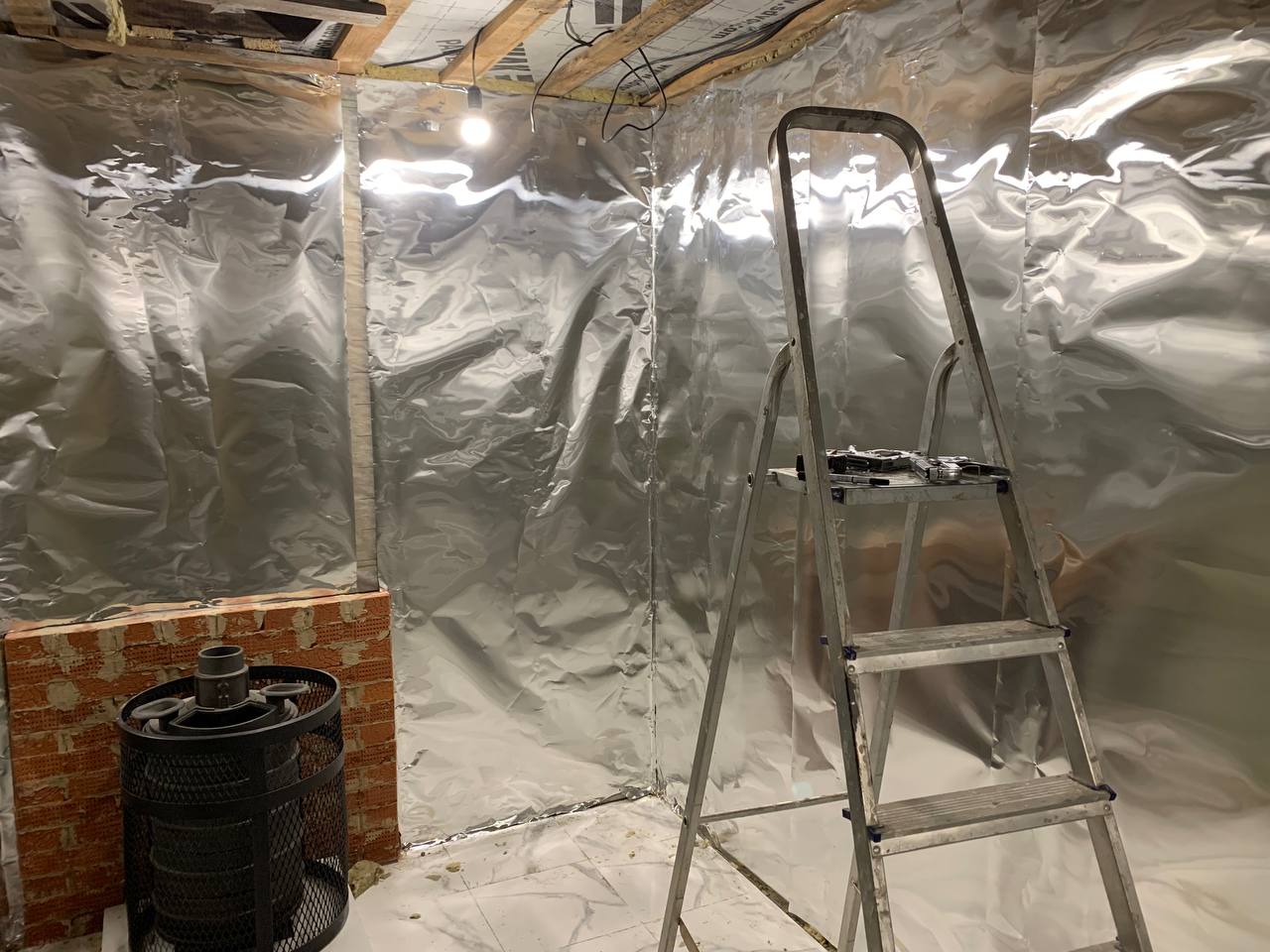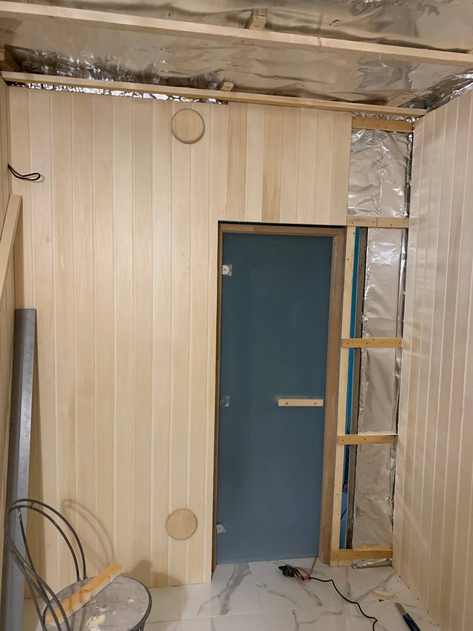 Монтаж банной GFS с установка дымохода, кладка портала