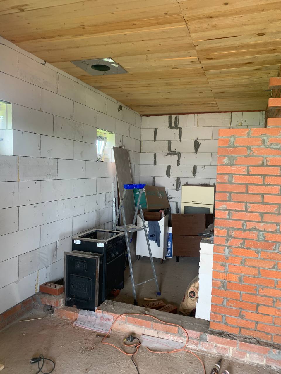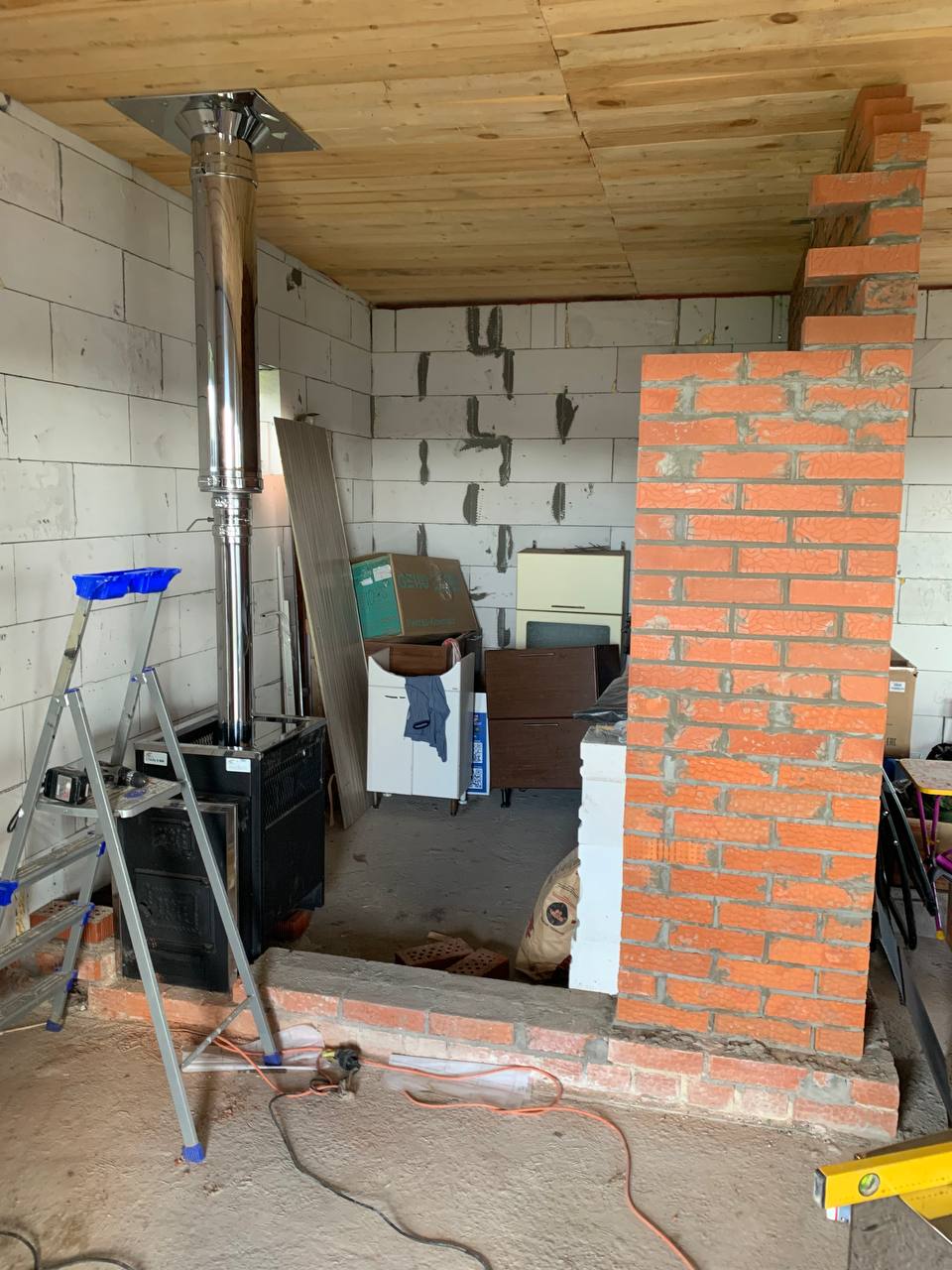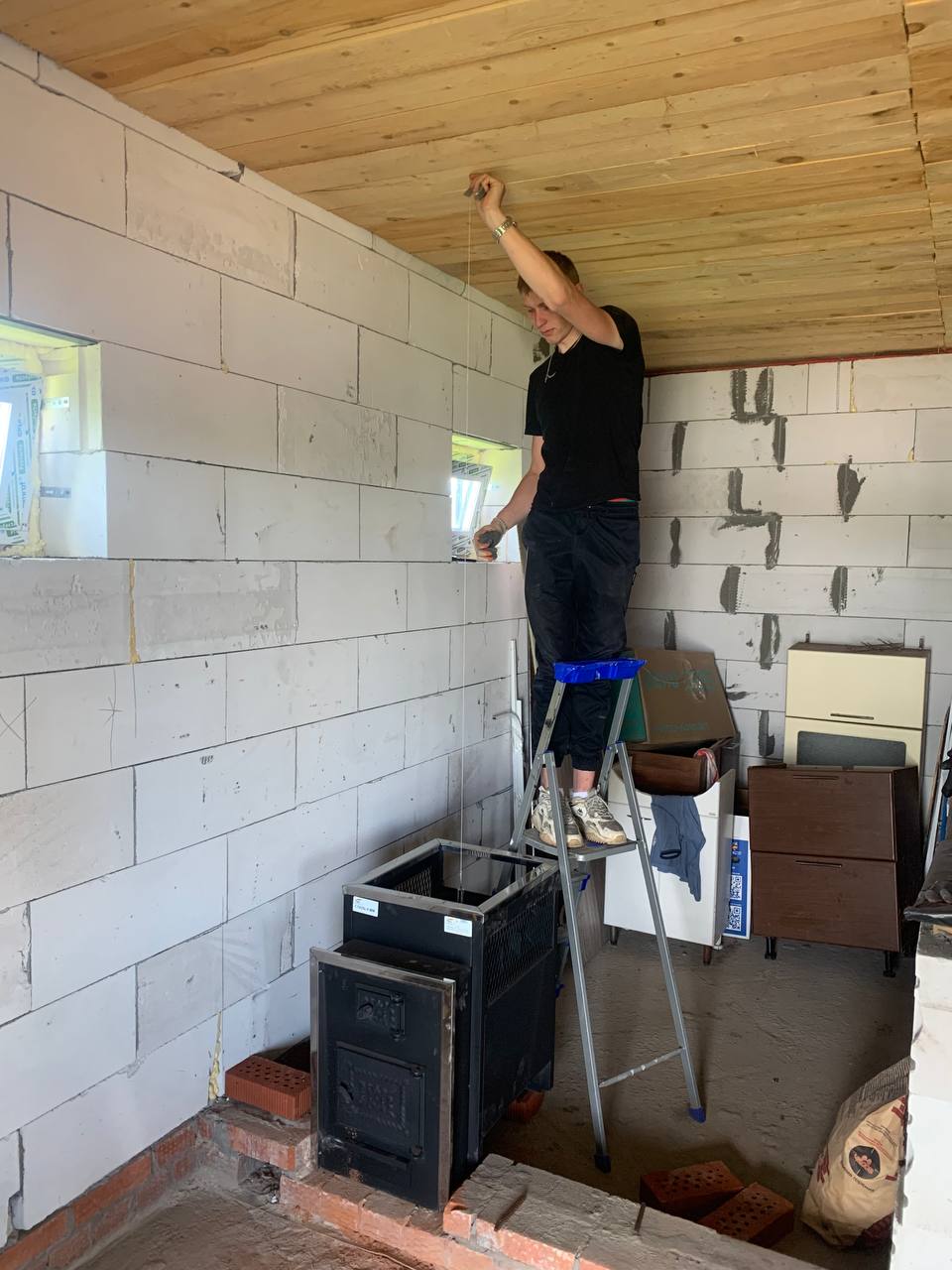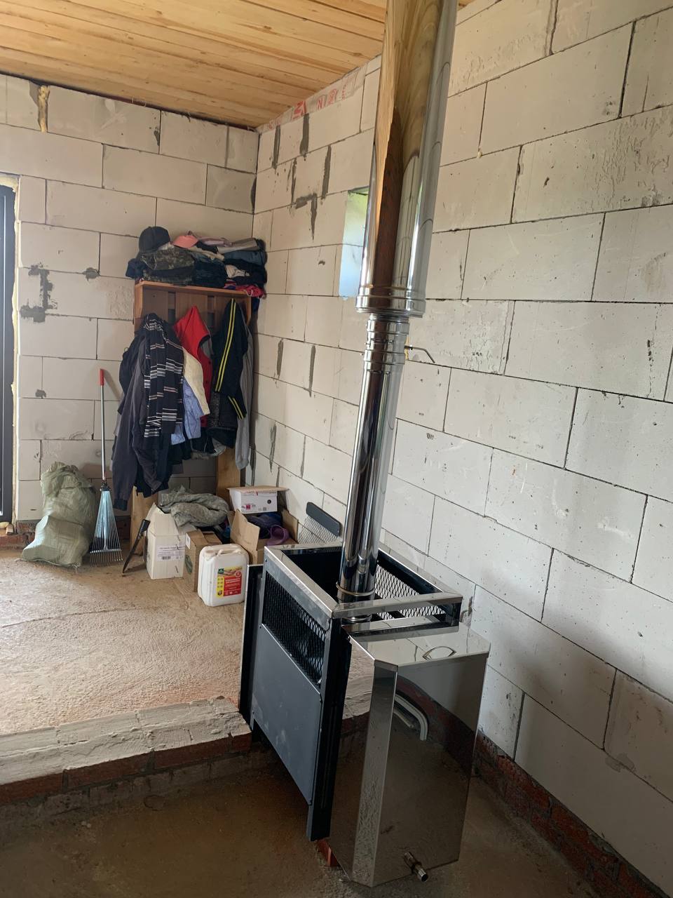 Монтаж банной печи  Радуга ПБ-21Б с установкой дымохода Тис